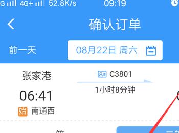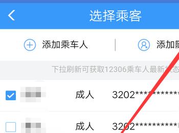 4. 第四步进入【确认订单】页面后,根据下图箭头所指,点击【选择乘客】选项。
