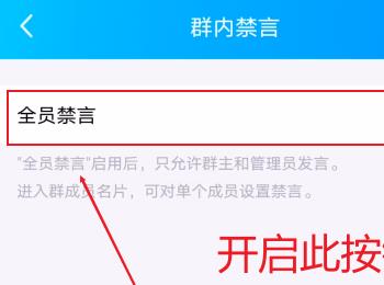 7. 如图,在打开的页面,我们就可以看到“全员禁言”的选项了,最后,将其右侧的开关打开即可。