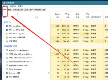 1. 首先第一步按下【ctrl+shift+esc】快捷键打开【任务管理器】窗口,根据下图箭头所指,点击【进程】选项。