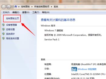 在弹出的系统对话框中点击【控制版面主页】。如下图所示: