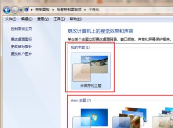点击进入【个性化】页面,桌面背景图标,可以自己设置桌面背景图标的,图片,窗口的颜色,声音,以及屏幕保护程序等等操作。点击即可更换。如下图所示:
