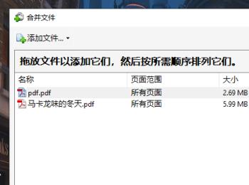 4. 第四步打开【合并文件】窗口后,根据下图所示,分别添加需要合并的文件并按顺序排列,接着点击右下角【合并】选项。