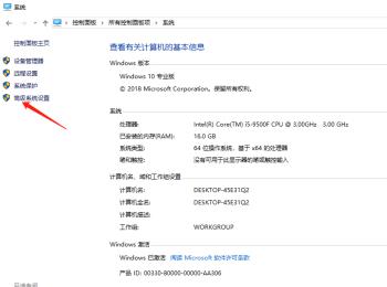 2. 在打开的系统页面,点击左上方的高级系统设置选项