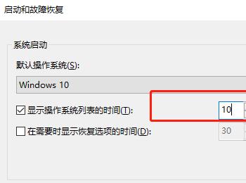 4. 然后在显示操作系统列表的时间处,设置为10秒,最后点击底部的确定即可完成设置。