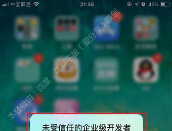 1. 我们在苹果手机上打开第三方下载的软件就会弹出如下图的提示。接下来就给大家介绍具体解决方法。