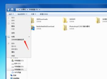 7. 在打开的菜单中,选择“文件夹和搜索选项”;