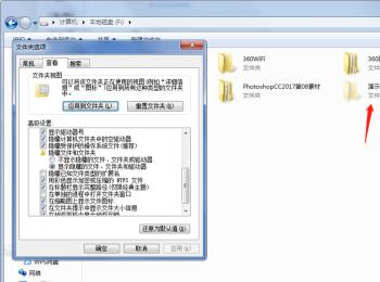 9. 在下方的高级设置中,找到隐藏文件和文件夹,点选上“显示隐藏的文件、文件夹和驱动器”的选项,最后点击右下方的应用按钮;
