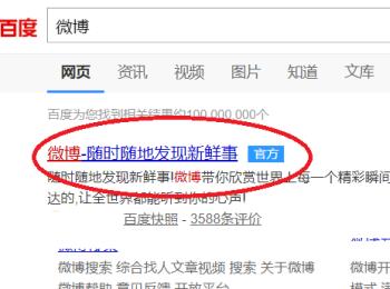 3. 第三步进入搜索结果页面后,根据下图所示,点击第一个【微博官方】链接。