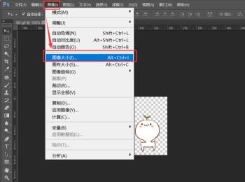 2.第二步,双击或者右击打开PS软件,接着导入GIF图,然后点击页面顶部的图像选项,并点击弹出窗口中的图像大小选项,或者按键盘上的altctrll组合键。