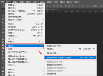 4.第四步,点击左上角的文件选项,接着点击弹出窗口中的导出选项,然后点击箭头所指的存储为WEB所用格式选项,或者按键盘上的ALT SHIFT CTRL S组合键。