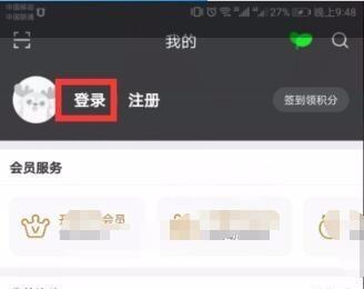 2.在进入“我的”个人界面后, 点击头像旁“登录”选项