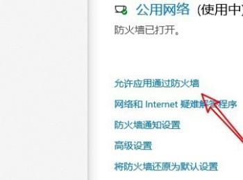 4. 在右侧打开的页面,点击“允许应用通过防火墙”的快捷链接。