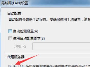 4. 在弹出的“局域网(LAN)设置”窗口中,代理服务器下,取消勾选的“为LAN使用代理服务器”和“对于本地地址不使用代理服务器”两个选项,最后点击确定按钮,重启iCloud即可解决。