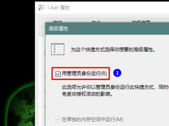 3.第三步,在下图所示的高级属性窗口中,勾选用管理员身份运行左边的复选框,接着点击右下角的确定选项。