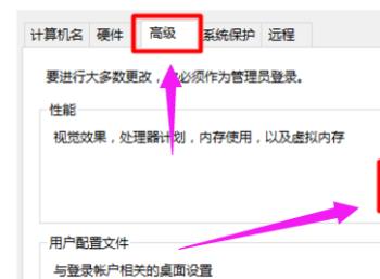 3. 在弹出的窗口中,上方切换到“高级”选项下,然后在性能选项下,点击右侧的“设置”按钮。