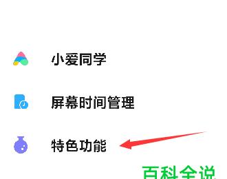 2. 在打开的设置页面后,向下滑动,找到特色功能的选项,点击:
