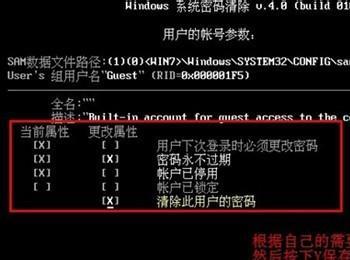 步骤九:想清除设置的登录密码的话在第二个界面选【02】,密码便会被自动清除,下次登录不用登录密码也可以进入操作系统了,操作步骤如下: