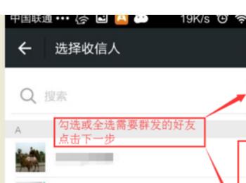 6、选择新建群发后,会出现一个选择收信人的页面。选择好要群发信息的收信人(不能超过200人), 选择好后点击“下一步”。
