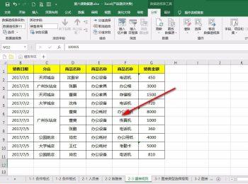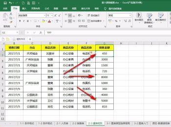 2.但是求和的结果有零,此时可以看到销售额的数值有些上面有绿色三角符号,这表示单元格是文本型数字