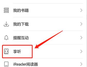 2.第二步,来到阅读软件主页面后,点击右下角箭头所指的我的选项,接着点击享听选项。