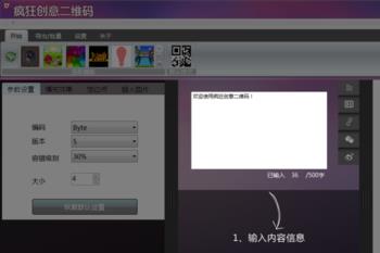 疯狂创意二维码是可用于生成风格独特的个性化二维码生成器,用户可以将目标信息输入到二维码生成器中,生成相应的个性二维码,然后输出为相应图片格式并保存。输入信息可以是:数字、网址、文字、微信、微博以及名片信息等,用户可以将想要生成二维码的信息批量导入,进行自动化批量生成导出处理。