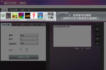 专业定制服务,让二维码随心所欲 系统还有专业的模版定制功能,可以根据用户的各种想法,定制个性二维码模版,在系统中,点选模版->输入内容->参数设置->生成,四步完成你想要的疯狂二维码。