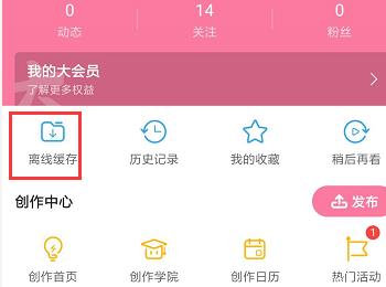 3. 进入我的页面后,找到左上方【离线缓存】选项,点击