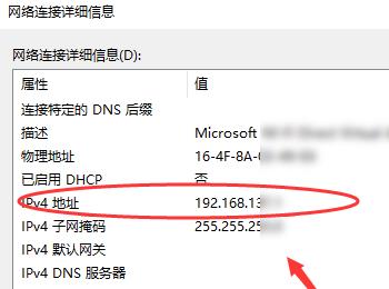 6. 最后在【详细信息】窗口中,根据下图箭头所指,即可查看IP地址。