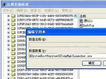 3、右侧窗口“默认”键值上右键选择“修改”,在打开的“编辑字符串”中将默认的数值数据“%SystemRoot%system32CompMgmtLauncher.exe”修改为“mmccompmgmt.msc”。