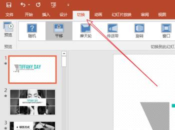 1. 第一步,如果去除背景音乐后,仍然有音乐的话,说明幻灯片内存在音效,我们需要点击上方的切换选项。