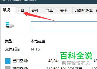 2. 在弹出的磁盘属性窗口中,上方切换到“工具”选项。