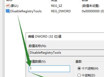 4. 然后命名为DisableRegistryTools,双击将其打开,数值数据设置为1即可,最后确定即可。