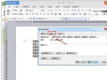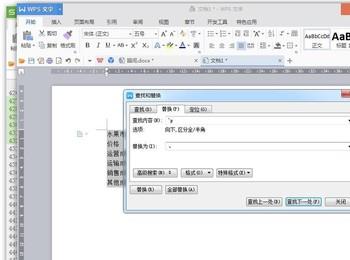 4. 接下来,将文字全部选中后,打开查找和替换窗口,在查找内容栏选择段落符号,下方替换为输入逗号