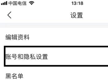 4. 进入设置页面后,找到并点击“账号和隐私设置”。