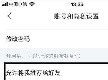 5. 进入账号和隐私设置页面后,将“允许将我推荐给好友”旁的开关关闭即可。