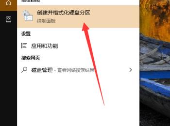 3. 第二步在搜索框中输入【磁盘管理】,接着根据下图箭头所指,点击【创建并格式化磁盘分区】选项。