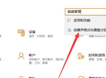 6. 最后在【设置】窗口中,根据下图箭头所指,搜索并点击【创建并格式化磁盘分区】选项即可。