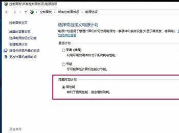 在打开的电源选项窗口,可见电源计划为:高性能计划;