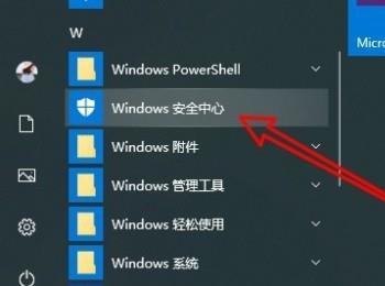 1. 首先第一步先点击左下角【开始】图标,接着在弹出的菜单栏中根据下图箭头所指,找到并点击【Windows 安全中心】选项。
