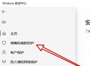 3. 第三步在弹出的菜单栏中,根据下图箭头所指,点击【病毒和威胁防护】选项。
