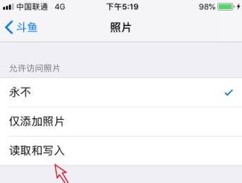 4. 第四步,我们可以看到如下图所示的照片页面,点击读取和写入选项,那么就成功开启了允许访问相册或照片的权限。