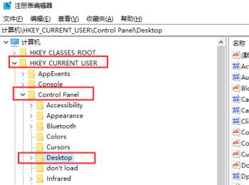 2. 第二步打开【注册表编辑器】窗口后,根据下图所示,依次点击【HKEY_CURRENT_USERControl PanelDesktop】文件夹。
