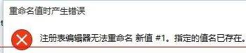 5. 第五步根据下图所示,如果弹出【重命名值时产生错误】提示,则执行下一步。