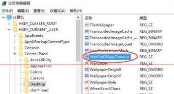 6. 第六步根据下图所示,找到并双击【WaitToKillAppTimeout】选项。