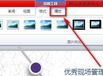 2. 第二步在【音频工具】菜单栏中,根据下图箭头所指,点击【播放】选项。