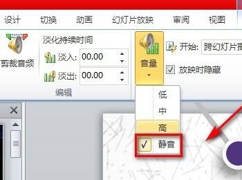4. 最后在弹出的下拉列表中,根据下图箭头所指,点击【静音】选项即可。