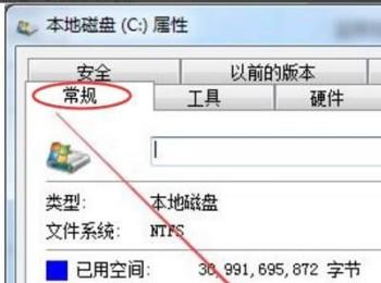 3. 第三步打开【属性】窗口后,根据下图箭头所指,依次点击【常规-磁盘清理】选项。
