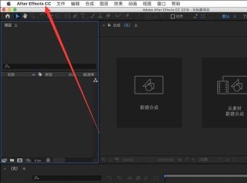 4. 第四步,来到Ae 软件主页面后,点击页面左上角的“After Effects CC”选项。
