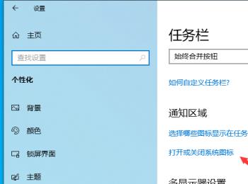 5. 在右侧打开的任务栏页面,找到打开或关闭系统图标的快捷链接,点击。