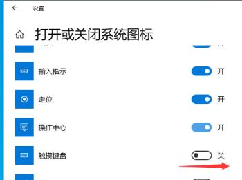 6. 在打开的图标列表中,找到触摸键盘的选项,将其右侧的开关打开。